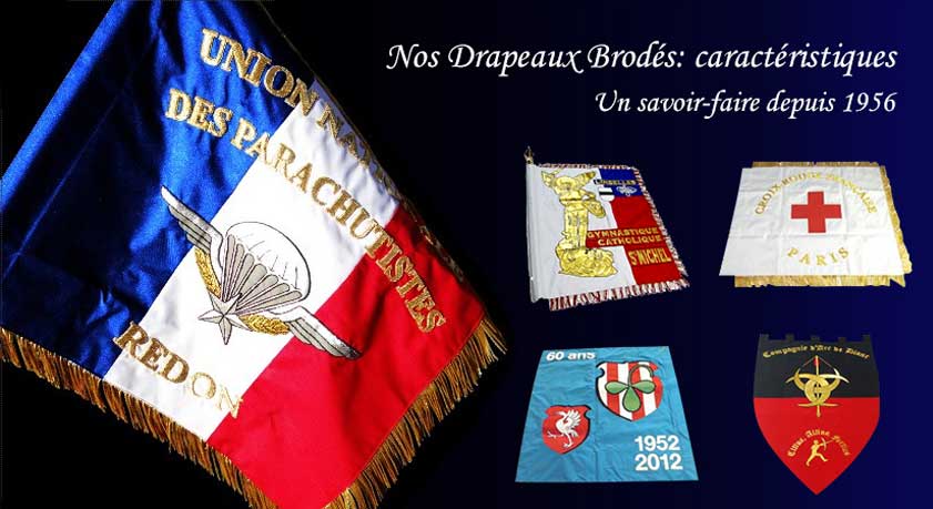 Généralement porté par les anciens combattants lors de leurs cérémonies officielles, le drapeau brodé est également utilisé par les sapeurs-pompiers, et quelques associations qui arborent leur logo et slogan sur ce support de prestige.